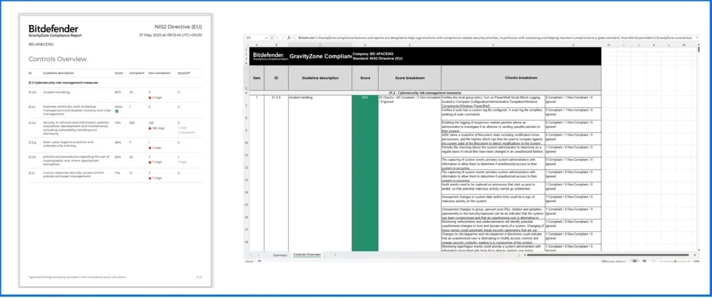Сформуйте звіт про відповідність у кілька кліків — Bitdefender автоматично збере всі необхідні дані, включаючи контрольні докази.